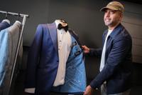 Nota Bene Bespoke’s tailor Shana Uthaya shows the outline of Australia inside the suit of Johnny Furphy, who is from Melbourne.